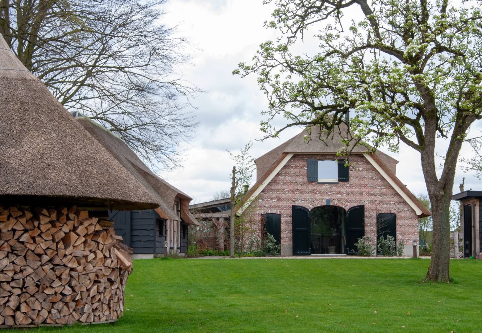 Traditionele materialen zoals oude klinkers, gebakken stenen, hout en grind versterken de authentieke uitstraling.